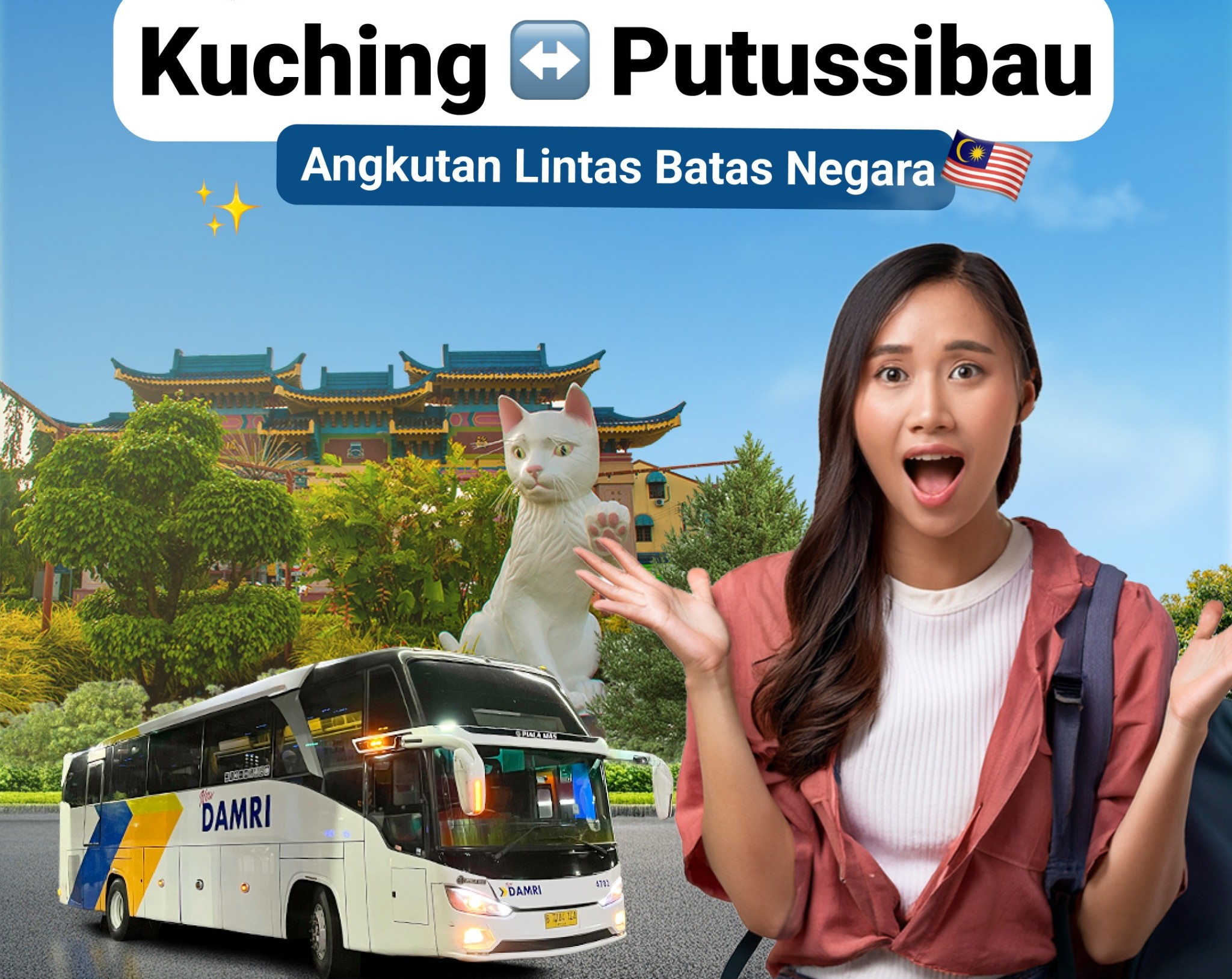 Jakarta, Bumntrack.co.id — Sebagai bagian dari penguatan konektivitas kawasan perbatasan, DAMRI kembali menambah layanan angkutan lintas batas negara (ALBN) yaitu pada rute Putussibau menuju Kuching.