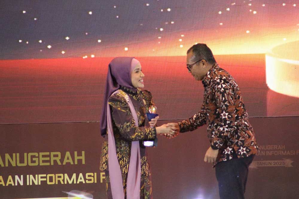 Direktur Human Capital & Compliance BTN Eko Waluyo menerima penghargaan dari Komisioner Bidang Sosialisasi, Edukasi, dan Komunikasi (SEK) Komisi Informasi Pusat (KIP) RI Samrotunnajah Ismail dalam ajang Anugerah Keterbukaan Informasi Publik 2025 di Birawa Assembly Hall, Hotel Bidakara, Senin (15/12). BTN meraih posisi tertinggi pada kategori Badan Usaha Milik Negara (BUMN) Informatif, mengalahkan bank Himbara lainnya. Pencapaian ini menegaskan posisi BTN sebagai bank Himbara terdepan dalam penerapan transparansi, akuntabilitas, dan keterbukaan informasi. Sekaligus mencerminkan kepercayaan publik yang terus terjaga dalam mendukung keuangan berkelanjutan.Foto/Dok-BTN/BUMNTRACK