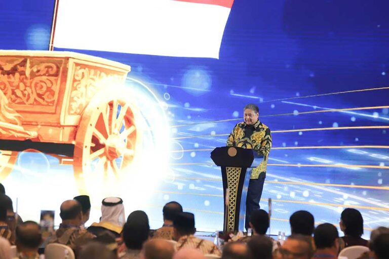 Menteri Koordinator Bidang Perekonomian Airlangga Hartarto memberikan sambutannya dalam Pertemuan Tahunan Bank Indonesia (PTBI) 2025 dengan tema “Tangguh dan Mandiri : Sinergi Mendorong Pertumbuhan Ekonomi Lebih Tinggi dan Berdaya Tahan” di Jakarta, Jumat (28/11/2025). PTBI 2025 merupakan forum strategis untuk menyampaikan pandangan Bank Indonesia mengenai kondisi perekonomian terkini, tantangan, prospek, dan arah bauran kebijakan Bank Indonesia.Foto/RoniMawardi/BUMNTRACK