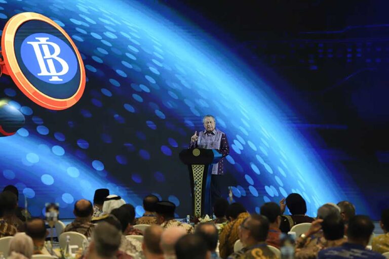 Gubernur Bank Indonesia (BI) Perry Warjiyo memberikan pandangan ekonomi dalam Pertemuan Tahunan Bank Indonesia (PTBI) 2025 dengan tema “Tangguh dan Mandiri : Sinergi Mendorong Pertumbuhan Ekonomi Lebih Tinggi dan Berdaya Tahan” di Jakarta, Jumat (28/11/2025). PTBI 2025 merupakan forum strategis untuk menyampaikan pandangan Bank Indonesia mengenai kondisi perekonomian terkini, tantangan, prospek, dan arah bauran kebijakan Bank Indonesia.Foto/RoniMawardi/BUMNTRACK