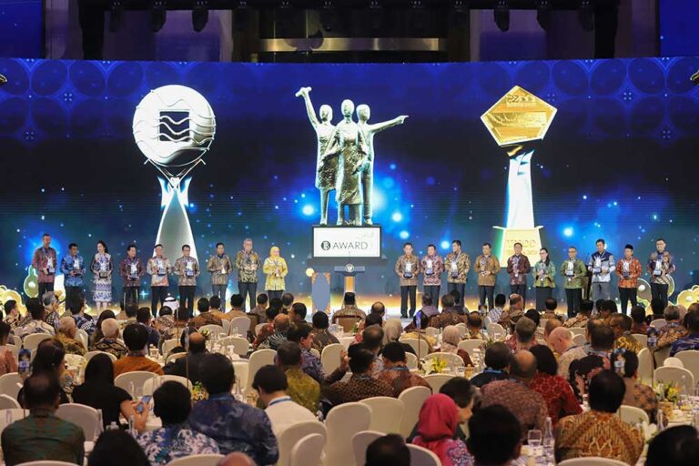 Para penerima penghargaan TPID Award, Championship TP2DD dan BI Awards 2025 kepada mitra strategis dalam Pertemuan Tahunan Bank Indonesia (PTBI) 2025 dengan tema “Tangguh dan Mandiri : Sinergi Mendorong Pertumbuhan Ekonomi Lebih Tinggi dan Berdaya Tahan” di Jakarta, Jumat (28/11/2025). PTBI 2025 merupakan forum strategis untuk menyampaikan pandangan Bank Indonesia mengenai kondisi perekonomian terkini, tantangan, prospek, dan arah bauran kebijakan Bank Indonesia. Foto/RoniMawardi/BUMNTRACK