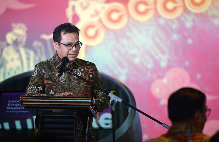 Wakil Menteri KOMDIGI Nezar Patria saat Launching Event Empowering Indonesia Report 2025 di Jakarta, Senin (27/10). Pemerintah Republik Indonesia menargetkan pertumbuhan ekonomi hingga 8% dan status negara berpenghasilan tinggi pada 2030 sebagai bagian dari visi Asta Cita. Salah satu pendorong utama pencapaian tersebut adalah pemanfaatan kecerdasan artifisial (AI) yang berdaulat. Menyadari hal ini, Indosat bersama Twimbit, perusahaan riset dan konsultasi terkemuka, meluncurkan Empowering Indonesia Report 2025 bertema “Building Bridges of Tomorrow”, yang menegaskan pentingnya sovereign AI atau AI berdaulat sebagai fondasi utama pertumbuhan ekonomi digital Indonesia.Foto/RoniMawardi/BUMNTRACK