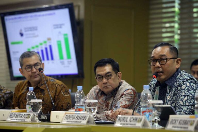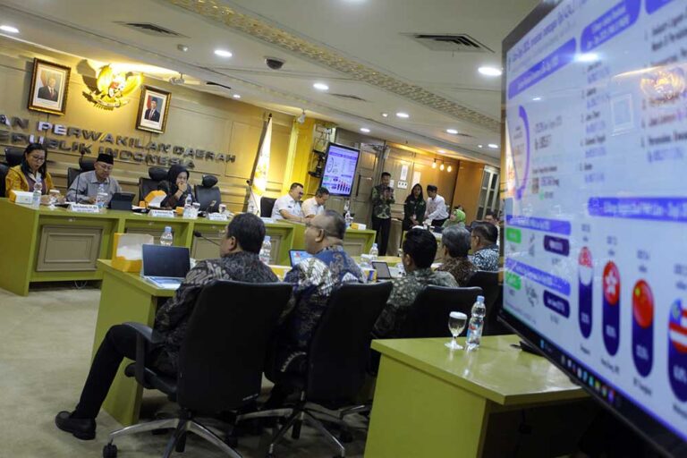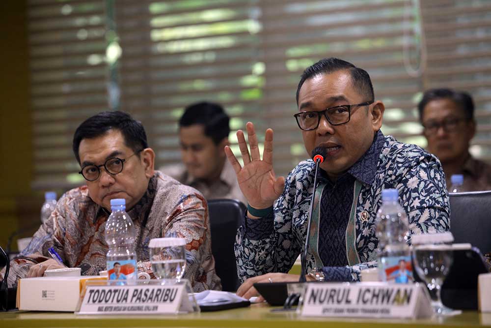 Wakil Menteri Investasi dan Hilirisasi/Wakil Kepala Badan Koordinasi Penanaman Modal (BKPM) Todotua Pasaribu (kanan) bersama sejumlah jajaran mengikuti Rapat Kerja dengan Komite IV DPD, di Ruang Sriwijaya, Kompleks Parlemen Senayan, Jakarta, Selasa (4/11). Rapat tersebut diantaranya membahas soal terget investasi sebesar Rp13 ribu triliun dalam lima tahun ke depan untuk mendorong pertumbuhan ekonomi nasional mencapai delapan persen sesuai visi Presiden Prabowo Subianto yang menjadi landasan utama arah kebijakan investasi nasional periode 2025–2029.Foto/RoniMawardi/BUMNTRACK