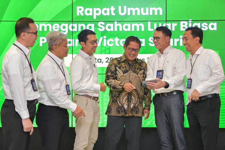 Direktur Utama PT Bank Syariah Nasional (BSN) Alex Sofjan Noor (keempat kiri) beserta Jajaran Direksi BSN Beki Kanuwa (kiri), Mochamad Yut Penta (kedua kiri), Arga M. Nugraha (ketiga kanan), Ari Kurniaman (kedua kanan), dan Abdul Firman (kanan) kompak menyatukan tangan usai Rapat Umum Pemegang Saham Luar Biasa (RUPSLB) Bank Victoria Syariah di Menara BTN, Jakarta, pekan lalu. Selain menyetujui susunan pengurus baru, RUPSLB tersebut juga menyepakati perubahan nama Bank Victoria Syariah menjadi Bank Syariah Nasional. Dengan identitas serta Direksi barunya, BSN siap melangkah lebih maju dan bersiap melakukan spin-off pada tahun ini untuk mempertegas posisinya sebagai Bank Umum Syariah hasil perkawinan Unit Usaha Syariah BTN dan Bank Victoria Syariah. BSN ditargetkan bakal menjadi bank syariah dengan pondasi finansial yang kokoh, serta mampu menghadirkan layanan digital modern berprinsip syariah.Foto/RoniMawardi/BUMNTRACK