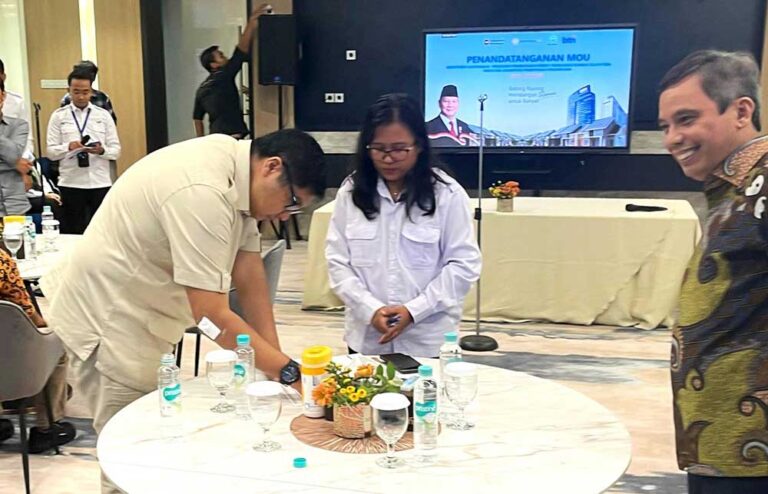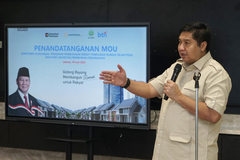 Menteri Perumahan dan Kawasan Permukiman (PKP) Maruarar Sirait menandatangani formulir pembukaan rekening tabungan di BTN disaksikan Direktur Utama BTN Nixon LP Napitupulu usai Penandatanganan Perjanjian MOU Komitmen Dukungan Program Pembiayaan KPR Sejahtera FLPP di Jakarta, Rabu (18/6). Pembukaan rekening tabungan di BTN merupakan bentuk dukungan Menteri PKP dan jajarannya terhadap BTN yang terus berkomitmen membantu pemerintah dalam mensukseskan Program Rumah Rakyat. BTN saat ini terus bertransformasi salah satunya dengan mendorong peningkatan dana murah yang dalam beberapa tahun ke depan ditargetkan komposisi dana murah bisa mencapai lebih dari 60% dengan menggenjot dana tabungan dan giro lebih besar lagi. Transformasi dalam sisi pendanaan ini dilakukan sesuai dengan semangat BTN menjadi bank tabungan bagi masyarakat Indonesia.Foto/Ist/BUMNTRACK