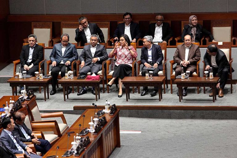 Head of Portofolio Analytic PT Bahana TCW Investment Management Indonesia Group Budi Hikmat (tengah) , dan Head of IFG Progress Ibrahim Kholilul Rohman (kanan), menjawab pertanyaan peserta disela gelaran “IFG Research Day 2025” yang dijadwalkan berlangsung, di Jakarta, 18 – 20 Februari 2025. Kegiatan ini merupakan salah satu rangkaian perayaan HUT IFG ke 5 tahun yang mengusung tema “Empowering Growth”. “IFG Research Day 2025” merupakan sebuah ajang untuk mendiseminasikan hasil riset dan kajian dari IFG Progress di industry keuangan non bank berbasis data kepada masyarakat luas. IFG Progress merupakan lembaga riset atau thinktank di bawah naungan IFG holding, ingin menyampaikan dan membagi hasil pemikiran progresif kepada masyarakat sehingga berdampak pada kemajuan industri jasa keuangan non bank Indonesia khususnya di industri asuransi, penjaminan dan investasi.Foto/Dok-IFG/BUMNTRACK