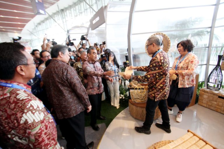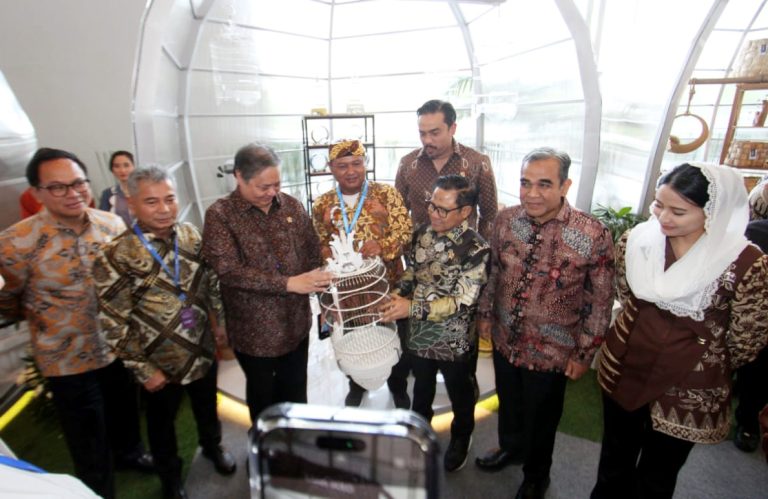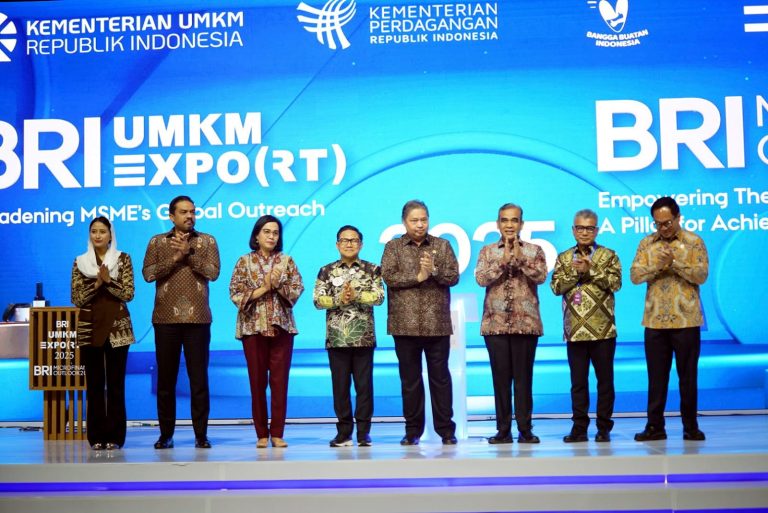 Menteri Koordinator Bidang Perekonomian Airlangga Hartarto (tengah) bersama Ketua MPR Ahmad Muzani (ketiga kanan) didampingi Dirut BRI Sunarso (kedua kanan), Wakil Menteri Badan Usaha Milik Negara (BUMN) Kartiko Wirjoatmodjo (kanan), Menteri Koordinator (Menko) Bidang Pemberdayaan Masyarakat Muhaimin Iskandar (ketiga kiri), Menteri Keuangan Sri Mulyani Indrawati (kedua kiri) dan Menteri Usaha Mikro, Kecil, dan Menengah Maman Abdurrahman meletakkan prasasti untuk meresmikan secara resmi acara BRI Microfinance Outlook 2025 di International Convention Exhibition (ICE) BSD City, Tangerang Selatan, Banten, Kamis(30/1/12025). PT Bank Rakyat Indonesia (Persero) Tbk. melaporkan secara konsisten fokus penyaluran kredit kepada usaha mikro, kecil, dan menengah (UMKM) senilai Rp 1.106 triliun per September 2024. Angka tersebut merupakan 82% dari total portofolio pembiayaan yang disalurkan oleh bank pelat merah. Selain itu, integrasi Holding Ultra Mikro yang dipimpin oleh BRI telah menyalurkan kredit dan pembiayaan kepada 50 juta nasabah UMKM. Sebanyak 36 juta di antaranya merupakan nasabah ultramikro. Foto/RoniMawardi/BUMNTRACK