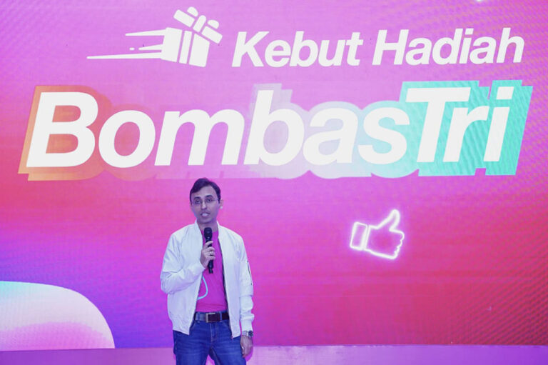 (ki-ka) Manish Kar – SVP-Head of High Value Growth Indosat, Saurabh Tamrakarsaat peluncuran program Kebut Hadiah BombasTri yang berlangsung di Jakarta, Rabu (17/09). Program ini berlangsung mulai 1 September hingga 31 Desember 2025.Foto/RoniMawardi/BUMNTRACK