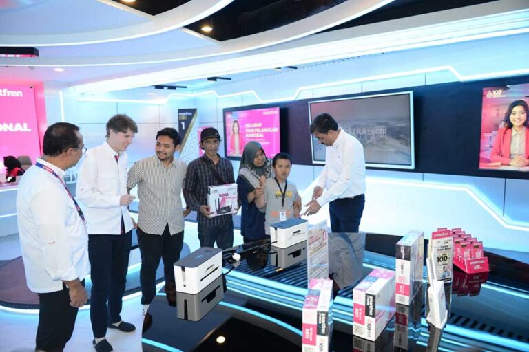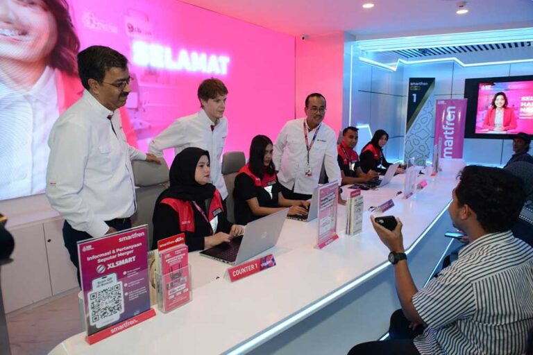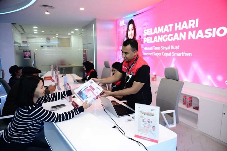 (Ki-ka) Chief Marketing Smartfren Officer, Sukaca Purwokardjono, Direktur & Chief Commercial Officer XLSMART, David Arcelus Oses dan Presiden Direktur & CEO XLSMART, Rajeev Sethi melayani pelanggan dalam acara Hari Pelanggan Nasional di Galeri Smartfren, Jl. Sabang, Jakarta Pusat. Kamis (4/9). Dalam rangka memperingati Hari Pelanggan Nasional 2025, XLSMART hadir dengan berbagai program spesial. Mulai dari diskon tagihan 50% untuk pelanggan XL Prioritas, tukar Poin dengan kuota aplikasi favorit buat pelanggan XL Prabayar, hingga hadiah langsung dan voucher menarik buat pelanggan Smartfren. Selain itu, jajaran Direksi, Customer Relations hingga Pimpinan Wilayah, turut serta secara langsung melayani pelanggan di Smartfren Galeri serta di empat XL Center Utama yaitu XLC XLSMART Tower Jakarta, XLC Pemuda Surabaya, XLC Martadinata Bandung, dan XLC Diponegoro Medan.Foto/RoniMawardi/BUMNTRACK
