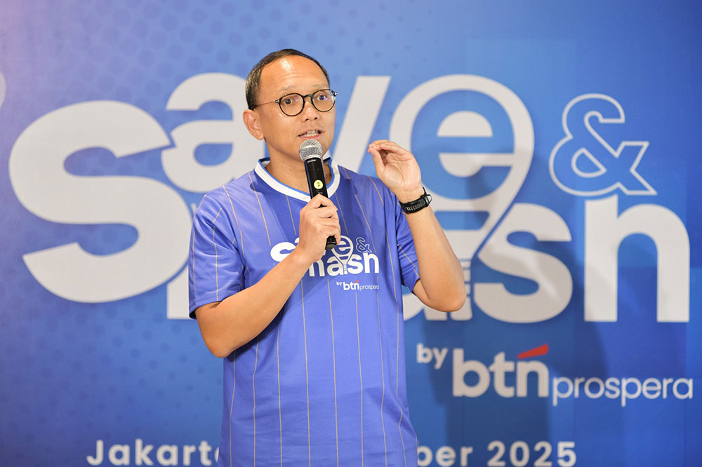 Retail Funding Division Head Frengky Rosadrian saat peluncuran program BTN Prospera Save & Smash di Athletiqs Airdome Jakarta, Rabu (22/10/2025). Program ini menjadi bagian dari upaya BTN, khususnya bagi nasabah segmen emerging affluent yang menjadi nasabah BTN Prospera, untuk mendorong gaya hidup sehat melalui sinergi antara kesehatan finansial dan aktivitas olahraga padel, dengan memberikan reward akses gratis ke lapangan padel bagi nasabah BTN Prospera yang aktif bertransaksi.Foto/RoniMawardi/BUMNTRACK