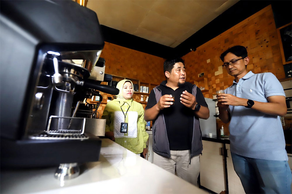 Pekerja memasukkan biji kopi ke dalam mesin sangrai (roasting) kopi di Bareto Coffee, Pangalengan, Kabupaten Bandung, Jawa Barat, Kamis (25/9/2025). PT Jaminan Kredit Indonesia (Jamkrindo) mendukung pertumbuhan UMKM berkelanjutan dan berkontribusi pada ekonomi melalui penjaminan kredit yang meningkatkan akses pembiayaan UMKM ke lembaga keuangan formal serta menjalin kemitraan strategis dengan berbagai pihak untuk memperluas jangkauan layanan dan mendorong pertumbuhan ekonomi nasional secara inklusif dan berkelanjutan.Foto/Dok-Jamkrindo/BUMNTRACK