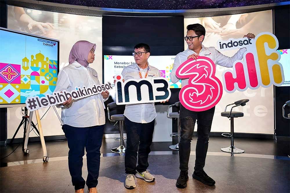 Swandi Tjia EVP-Head of Circle Jakarta Raya Indosat (paling kanan) dan Shatya Framudia SVP-Head of Region Inner Jakarta Indosat saat penyerahan Sepeda Listrik Outlet Keliling (Oling) kepada Mitra Outlet di Acara Media Update Lebih Baik Indosat yang berlangsung di Jakarta, Selasa (24/02). Program ini adalah bentuk nyata komitmen Indosat dalam memberdayakan mitra lokal dan memperluas akses layanan digital bagi masyarakat. Indosat terus menghadirkan inovasi distribusi yang adaptif. modern dan berkelanjutan.Foto/RoniMawardi/BUMNTRACK