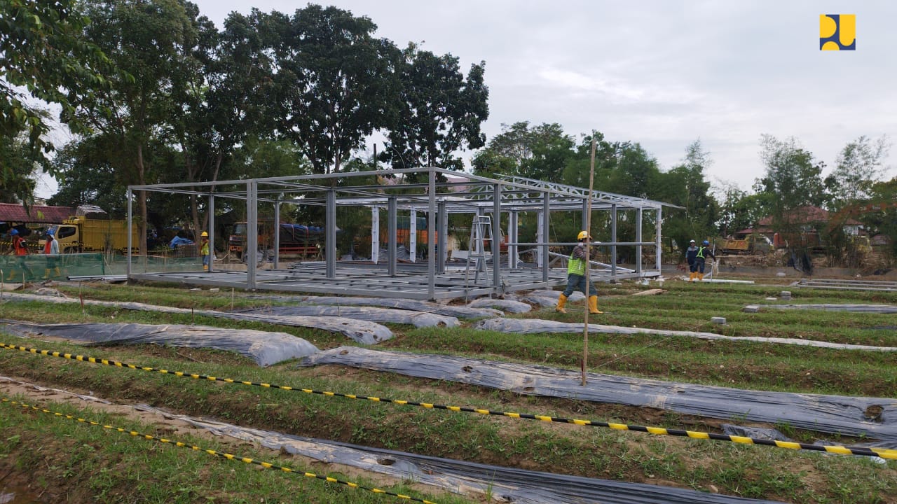 Dari sisi teknis, huntara dibangun menggunakan sistem bangunan modular dengan struktur rangka baja ringan yang dirancang kuat, cepat dibangun, dan tetap memberikan kenyamanan bagi penghuni. Tahapan pekerjaan meliputi pembangunan pondasi, pemasangan rangka modular, dinding dan atap baja ringan, hingga pekerjaan mekanikal, elektrikal, dan plumbing (MEP).