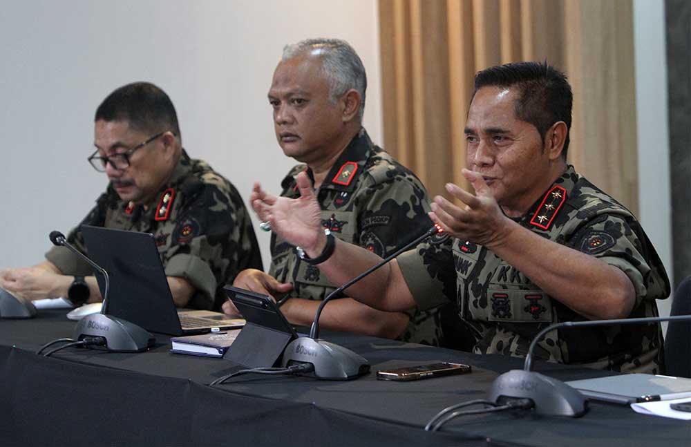 Direktur Jenderal Pengawasan Sumber Daya Kelautan dan Perikanan (PSDKP) Kementerian Kelautan dan Perikanan (KKP) Pung Nugroho Saksono (kiri), Direktur Pengendalian Operasi Armada Teuku Elvitrasyah memberikan keterangan pers terkait penangkapan tiga kapal ikan asing di Jakarta, Rabu (15/4/2026). Kementerian Kelautan dan Perikanan (KKP) menyelamatkan potensi kerugian negara sebesar Rp20,2 miliar dengan menangkap tiga kapal ikan asing berbendera Malaysia yang diduga melakukan penangkapan ikan ilegal di Selat Malaka pada 10-11 April 2026. Direktur Jenderal Pengawasan Sumber Daya Kelautan dan Perikanan (PSDKP) KKP Pung Nugroho Saksono mengatakan ketiga kapal tersebut ditangkap saat beroperasi di wilayah perairan Indonesia menggunakan alat tangkap pukat tarik atau trawl yang dilarang.Foto/RoniMawardi/BUMNTRACK
