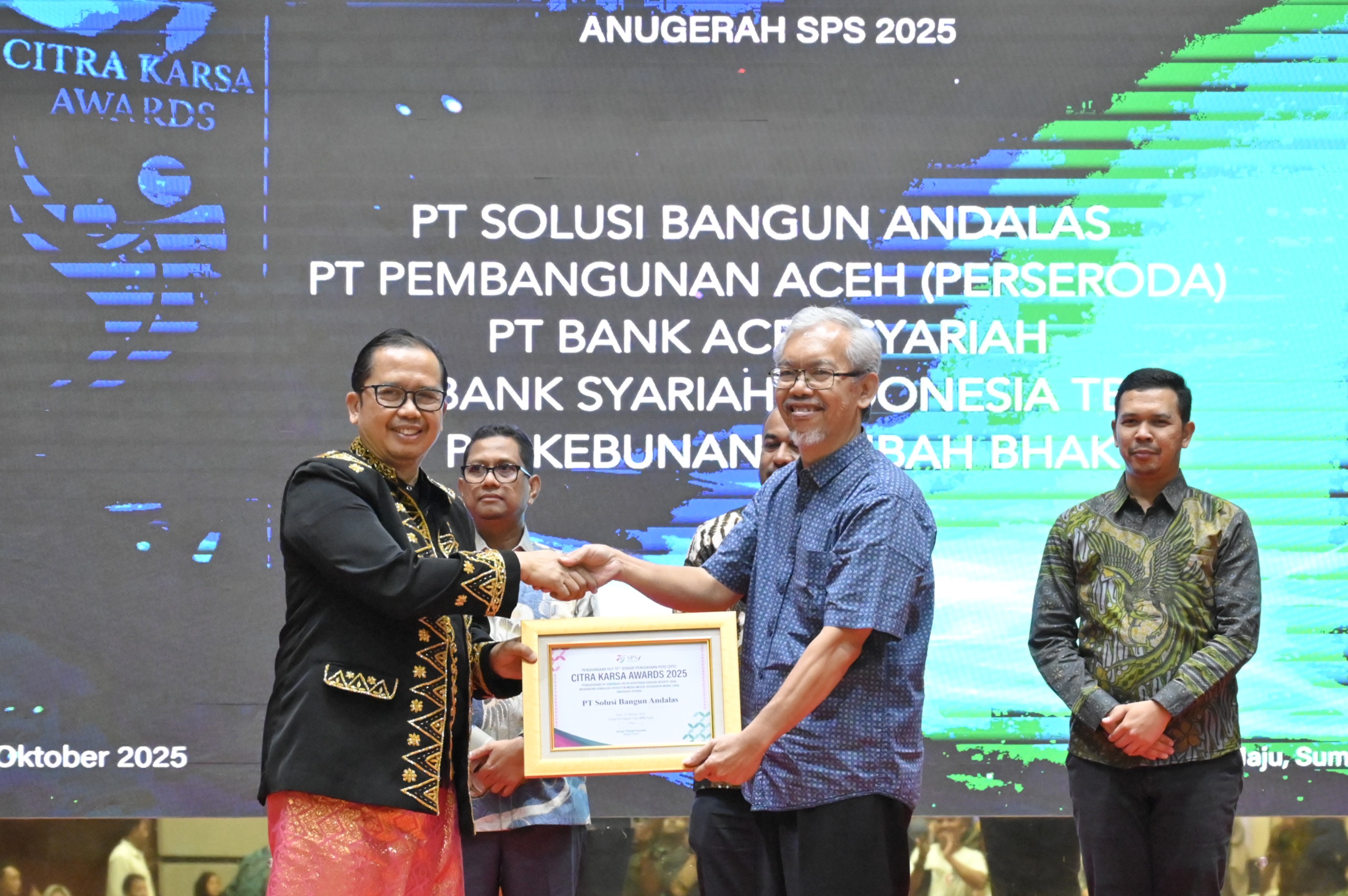 Penghargaan diserahkan oleh Syamsudin Hadi Sutarto, Wakil Ketua Umum Bidang Organisasi & Hukum SPS Indonesia yang juga CEO BUMN Track dan diterima oleh General Manager PT Solusi Bangun Andalas, R. Adi Santosa di Aceh pada 20 Oktober 2025.