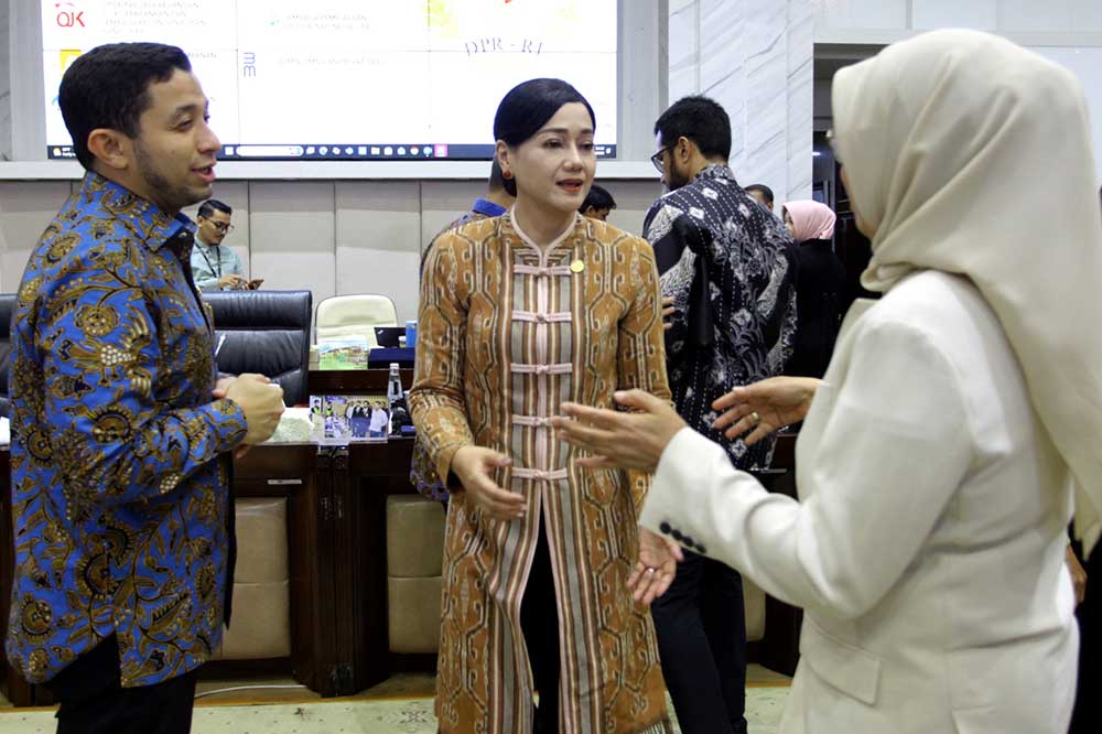 Ketua Dewan Komisioner Otoritas Jasa Keuangan (OJK) Friderica Widyasari Dewi (kedua kiri) berfoto bersama Ketua Komisi XI DPR M. Misbakhun (tengah), Wakil Ketua Komisi XI Fauzi Amro (kedua kanan) dan anggota Komisi XI usai mengikuti Rapat Kerja (Raker) di Gedung Nusantara I, Kompleks Parlemen Senayan, Jakarta, Rabu (1/4). Rapat ini membahas 8 Program Kerja Prioritas OJK, yang menjadi fokus utama sektor keuangan adalah Makan Bergizi Gratis (MBG), Koperasi Desa dan Kelurahan Merah Putih (KDKMP), serta Program Tiga Juta Rumah.Foto/RoniMawardi/BUMNTRACK