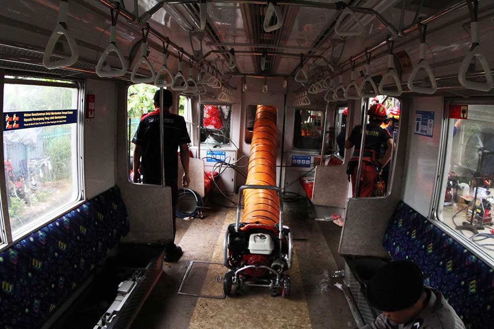 Petugas Lakukan Evakuasi Gerbong Kereta Api Pasca Insiden