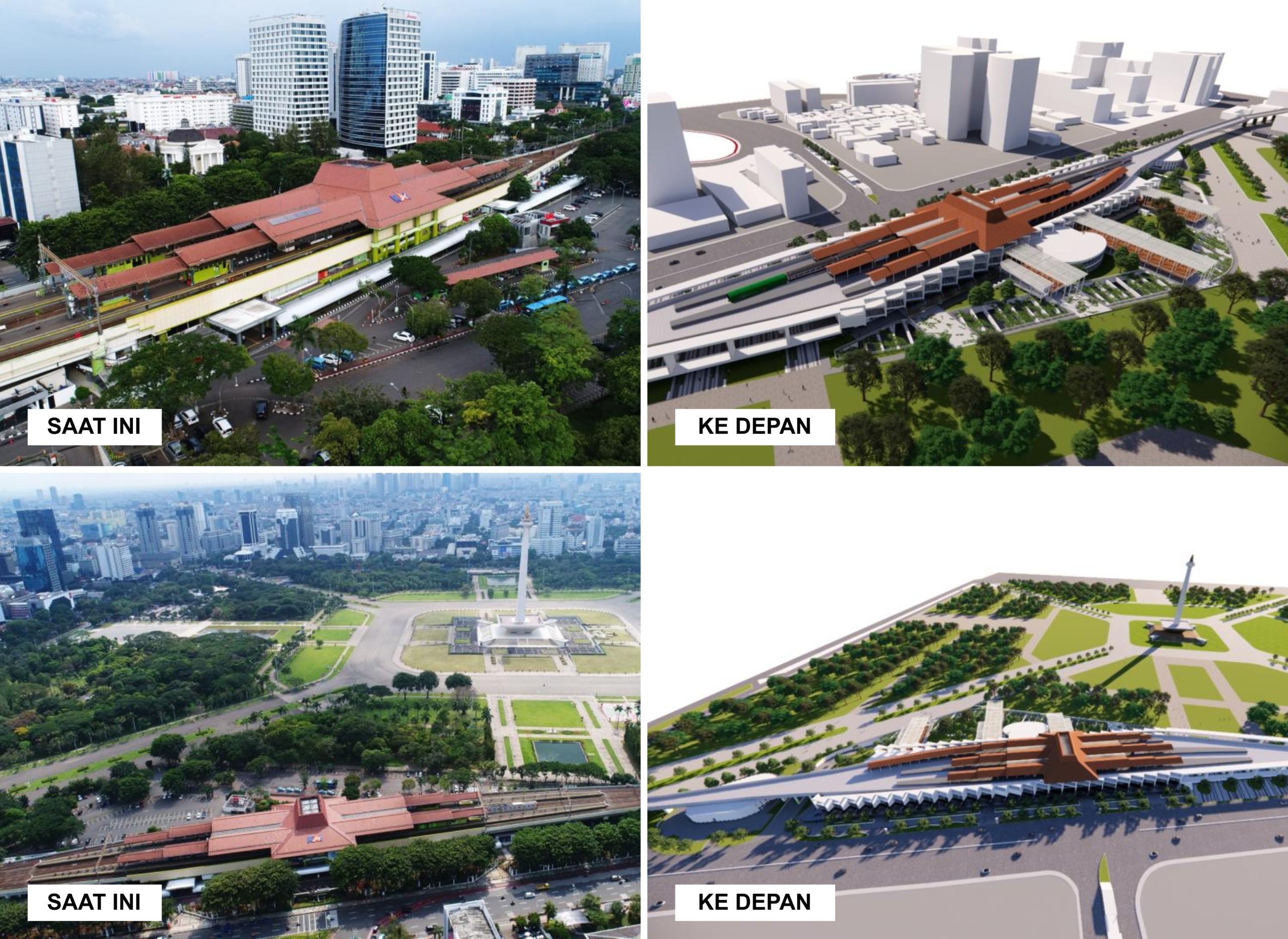 Dari sisi konektivitas, Stasiun Gambir akan diperkuat sebagai hub transportasi terpadu yang menghubungkan Kereta Api Jarak Jauh, Commuter Line, MRT Jakarta, serta layanan bus secara seamless. Penataan kawasan juga mencakup integrasi stasiun dengan ruang publik dan taman kota di kawasan Medan Merdeka, termasuk area Monumen Nasional.