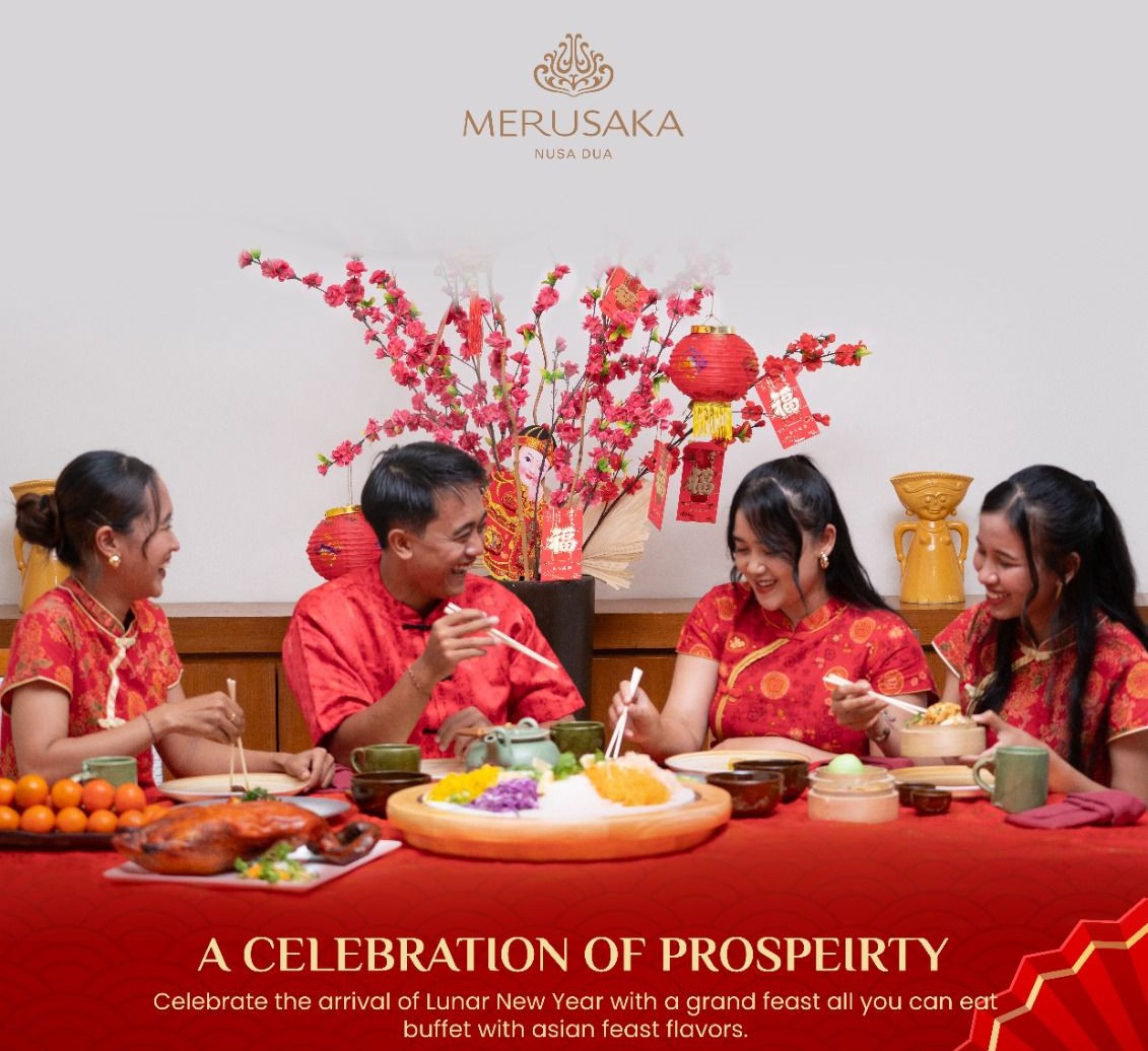 Merusaka Nusa Dua menghadirkan perayaan Chinese New Year 2026 melalui “A Celebration of Prosperity”, jamuan all-you-can-eat Asian buffet yang digelar di Gading Restaurant pada 16 Februari 2026, pukul 18.30–21.30 WIB. Program ini ditawarkan dengan harga IDR 628.000,- net/orang (dengan penawaran khusus harga 50% untuk anak-anak usia 6–11 tahun) dan dilengkapi dengan Barongsai Performance yang dirancang untuk memberikan pengalaman bersantap spesial dan mempererat kebersamaan dalam momen perayaan Imlek.