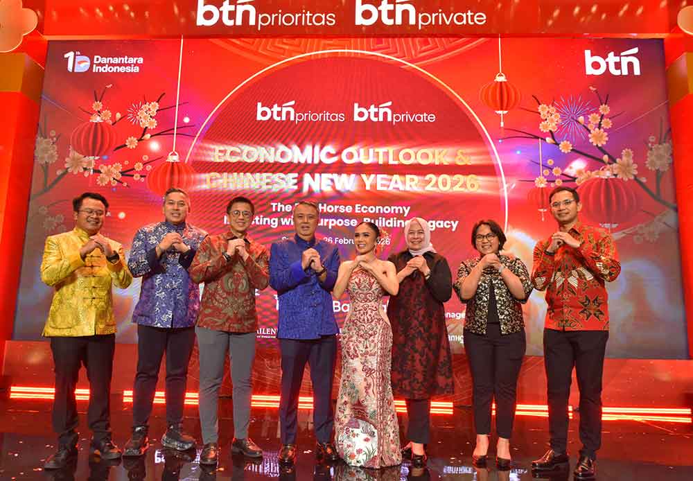 Komisaris Independen PT Bank Tabungan Negara (Persero) Tbk Panangian Simanungkalit (ketiga kiri), Wakil Direktur Utama BTN Oni Febriarto Rahardjo (kanan) dalam kegiatan BTN Economic Outlook & Chinese New Year 2026 di Surabaya, Kamis (26/2). Saat ini, BTN mencatatkan pertumbuhan double digit untuk bisnis wealth management BTN di Surabaya. BTN tengah mempersiapkan berbagai layanan baru consumer banking serta menawarkan kredit modal kerja dan Kredit Usaha Rakyat yang dapat dimanfaatkan nasabah untuk memaksimalkan potensi usaha, memperluas kapasitas bisnis, serta meningkatkan kualitas pengelolaan keuangan mereka secara berkelanjutan.Foto/Dok-BTN/BUMNTRACK