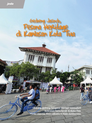 jeda Gedoeng Jasindo, Pesona Heritage di Kawasan Kota Tua Gedung-gedung bergaya vintage memadati kawasan bersejarah di Kota Tua. Meski menua, daya pikatnya kian memesona. 78 | BUMN Track | No. 144 TAHUN XIII JANUARI 2020 JEDA.indd 78 1/14/20 4:34 PM